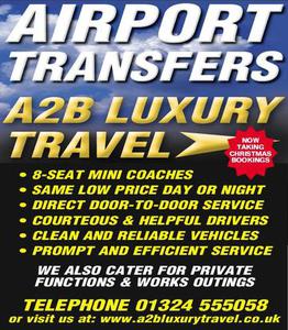 A2B Luxury Travel is Falkirk's leading airport transfer company with over 18 years experience. Our goal is to provide you with a courteous, expedient, professional service of the highest standard. A2B provides a transfer service that covers not only Falkirk but the whole of Central Region to any of the major airports in mainland UK.